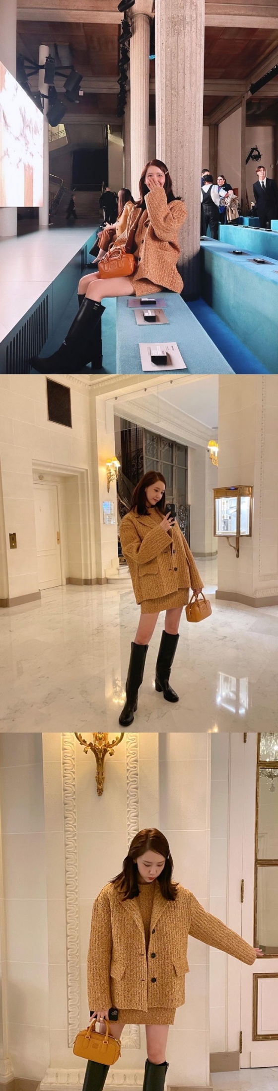 공개된 사진 속 윤아는 겨자색 니트 투피스와 오버핏 재킷을 매치해 화사한 가을 패션을 선보였다. 또 윤아는 특유의 밝고 화사한 분위기와 독보적인 오라로 이목을 집중시켰다.