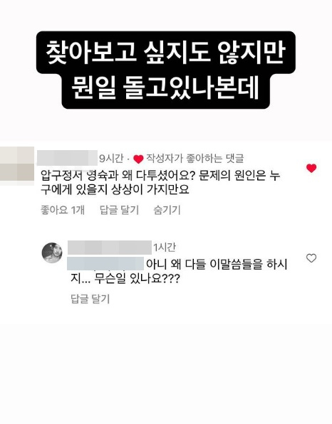 네티즌은 영수에게 "압구정에서 영숙과 왜 다투셨어요? 문제의 원인은 누구에게 있을지 상상이 가지만요"라고 댓글을 남겨 눈길을 끌었다.
