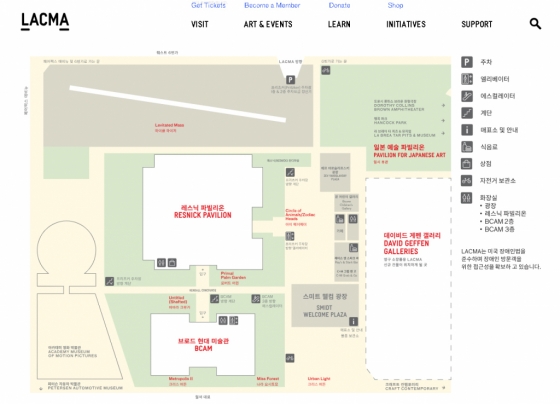 이미 지난 6월에는 미술관에 관한 전반적인 소개, 지도, 관람객 주의사항 등을 상세하게 소개한 한국어 안내서를 제작해 한국인 관람객들에게 무료로 제공해왔다. 이번 한글날을 맞아서는 LACMA 홈페이지에 약식으로 제작한 '한글 지도'를 제공하게 됐다. 영어, 스페인어에 이어 세 번째로 한국어 지도를 확인할 수 있게 된 점은 매우 뜻깊다.