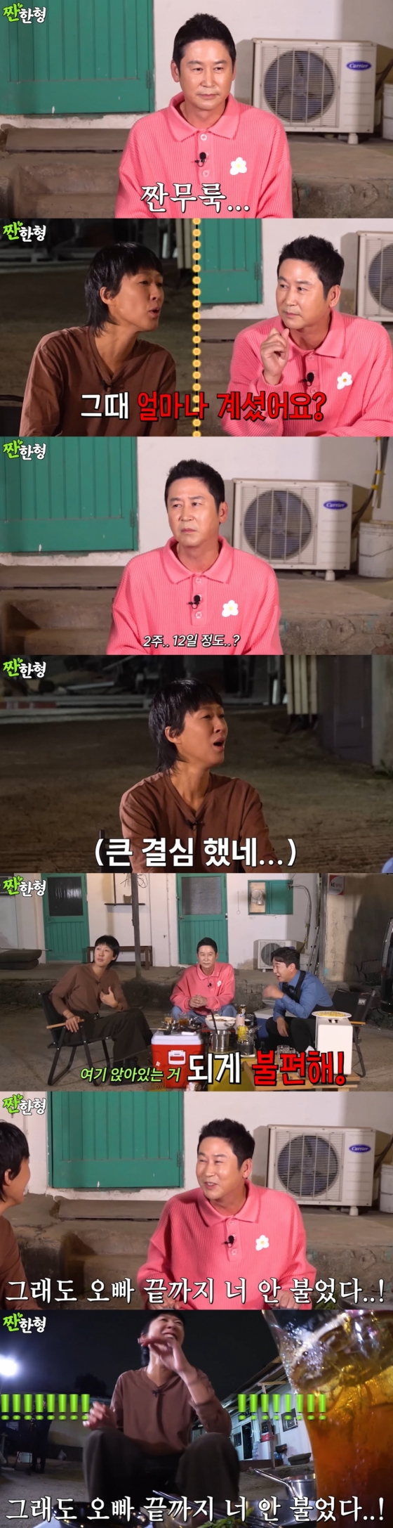 이날 '짠한형' 게스트로 나선 홍진경은 신동엽에게 "최장 기간 술을 안 마셔본 게 며칠이냐"라고 물었고, 신동엽은 "구치소 이야기를 해야 할까?"라며 "너 일부러 물어본 거지?"라고 대답했다.