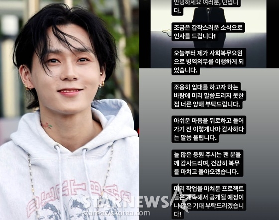 던은 12일 "조금은 갑작스러운 소식으로 인사를 드린다. 오늘부터 제가 사회복무요원으로 병역의무를 이행하게 됐다"고 밝혔다.