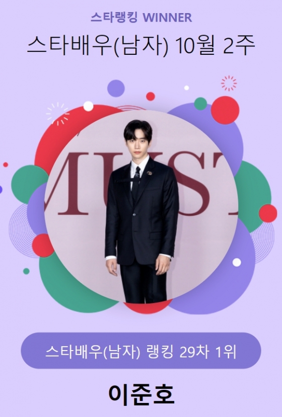 이준호는 지난 5일 오후 3시 1분부터 12일 오후 3시까지 진행된 10월 2주(29차) 스타랭킹 스타배우 남자 랭킹 투표에서 김남길, 박해진을 꺾고 1위를 차지했다.