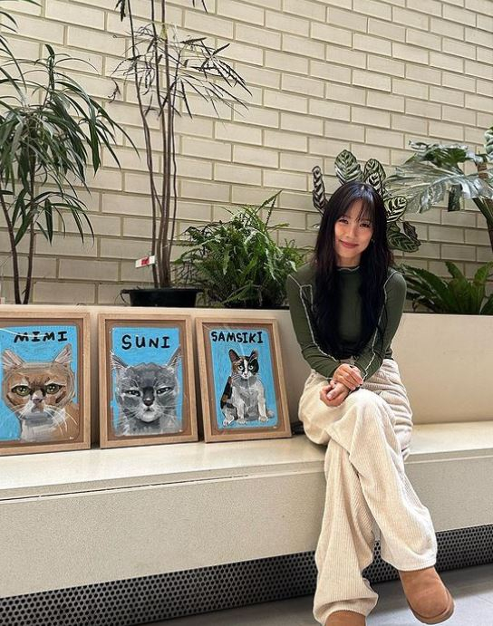 특히 이효리는 세 반려묘의 그림을 나란히 세운 채 은은한 미소를 지어 눈길을 끌었다.
