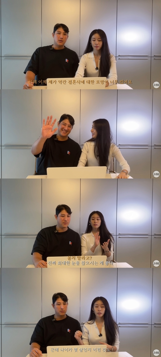 지연과 황재균은 지난해 12월 서울 모처에서 결혼식을 올렸다. 당시 영상을 보던 황재균은 시작부터 눈물을 보였다. 그는 "웨딩 플래너 없이 준비했다. 도와주는 분들이 있었는데 전문적인 분이 해주는 건 아녔기에 힘들었다. 내가 결혼식에 대한 로망이 컸다"라며 "난 무조건 호텔에서 해야 했고 지연이는 둘만 해도 상관없다고 했었다. 스몰 웨딩 얘기도 했는데 절대 싫었다. 무조건 호텔에서 해야 한다고 했다. 여기도 사실 내가 좀 밀어붙였다"라고 말했다.