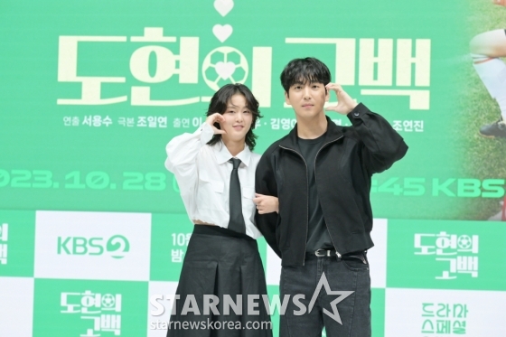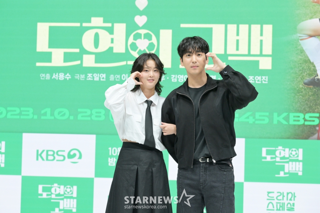 배우 이연, 차선우가 13일 오후 온라인으로 진행된 KBS 2TV 단막극 '드라마 스페셜 2023' 합동 제작발표회에 참석해 포즈를 취하고 있다.