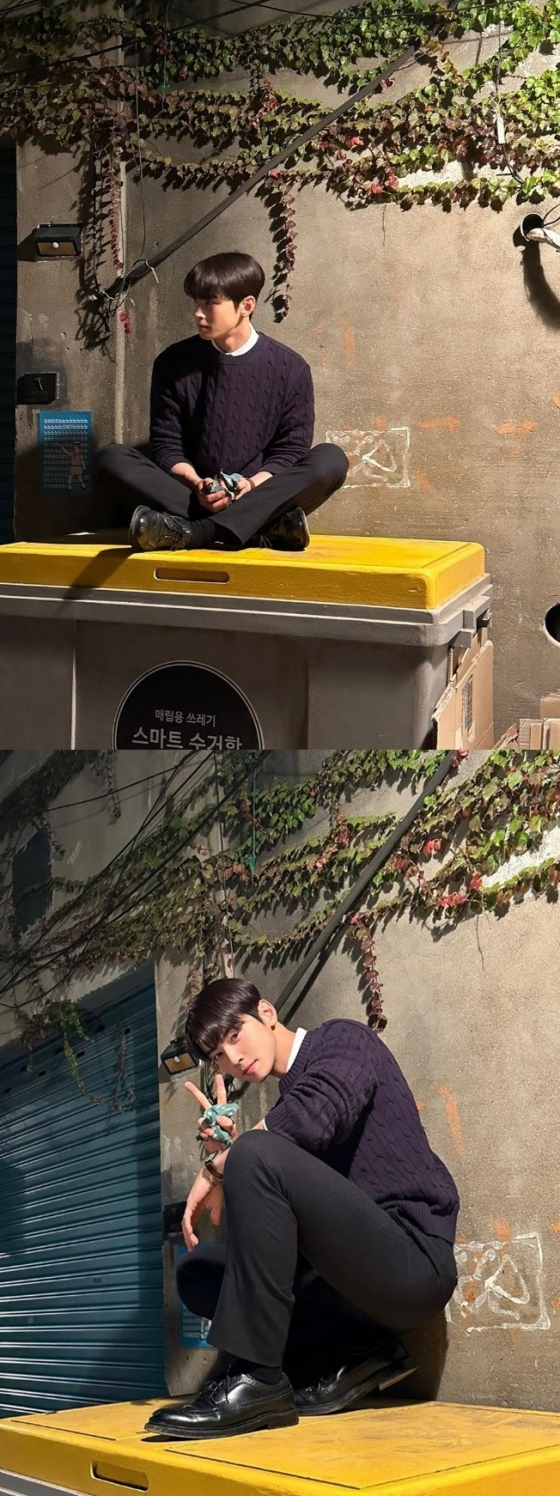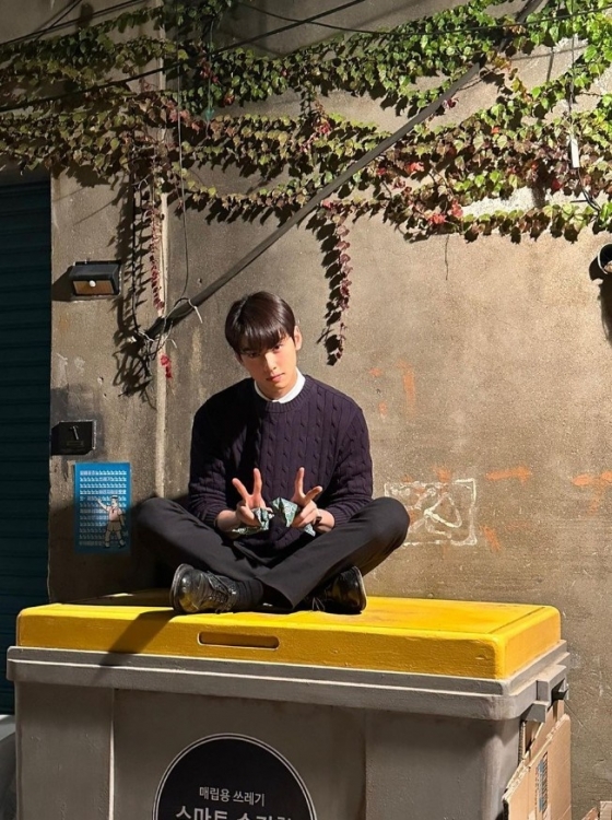 지난 12일 차은우는 자신의 인스타그램에 별다른 문구 없이 여러 장의 사진을 게재했다. 공개된 사진 속 차은우는 쓰레기 수거함 위에서 포즈를 취하고 있다.