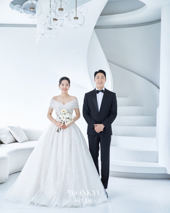 웨딩화보 속 손헌수와 예비신부는 순백의 드레스와 화이트 수트를 입고 다양한 포즈를 취한다. 서로를 향한 애정이 드러나 이목을 끈다.