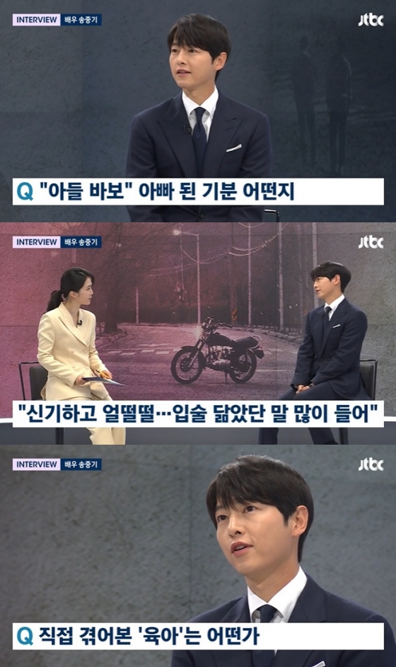 이어 송중기는 "나도 계속 더더욱 입술을 예의주시하고 보긴 하는데, 그런 말 들으면 굉장히 기분 좋고 신기하기도 하고 아직도 얼떨떨하고 '내가 아빠가 됐나', '내가 아들이 생겼구나' 신기하다. 아직도 얼떨떨하다"라고 이야기했다.