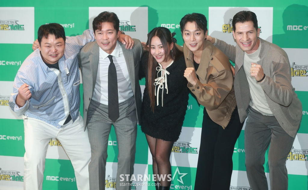 연예방송'위대한 가이드 화이팅'[★포토]발행 : 2023.10.16 ・ 14:43이동훈 기자광고삭제고규필, 김대호, 조현아, 윤두준, 알베르토 몬디가 16일 오후 서울 마포구 상암동 스탠포드 호텔에서 진행된 MBC에브리원 새 예능 '위대한 가이드' 제작발표회에 참석해 포즈를 취하고 있다. /2023.10.16<저작권자 © 스타뉴스, 무단전재 및 재배포 금지>위대한가이드고규필김대호윤두준조현아알베르토몬디추천 기사이동훈 기자기자홈좋아요 연예-방송의 인기 급상승 뉴스연예-방송의 최신 뉴스