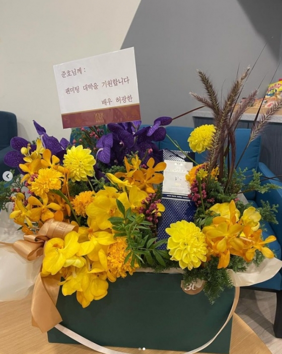 이준호는 허광한에게 받은 노란 꽃다발 선물도 공개해 눈길을 끌었다. 꽃다발에는 허광한이 "준호님께. 팬미팅 대박을 기원합니다"라고 한글로 번역한 메시지가 적혀있어 훈훈함을 더했다.