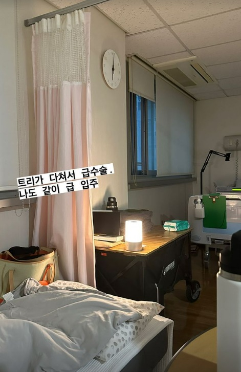 이어 그는 "트리가 처음에는 많이 속상해했는데 그래도 이 정도임에 감사하고 다른 곳 건강한 것에 또 감사하고 좋은 선생님에게 수술을 받을 수 있음에 감사하고 이 과정에서도 서로 웃으며 재미를 이야기할 수 있는 서로가 있음에 감사하기로 했다. 당분간 다이어트도 병실 안에서 하는 걸로"라고 전했다.