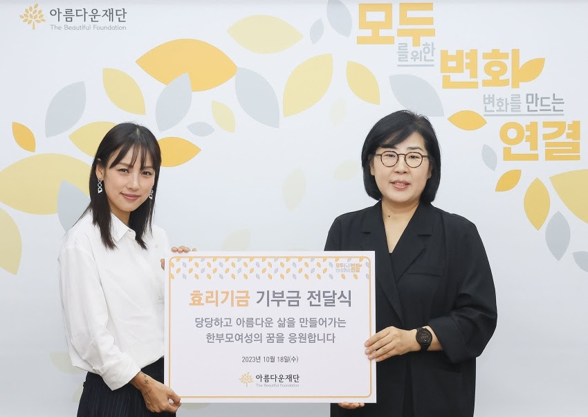 이효리는 지난 19일 긴급한 도움이 필요한 한부모여성을 위해 아름다운재단에 3억 원을 기부했다.