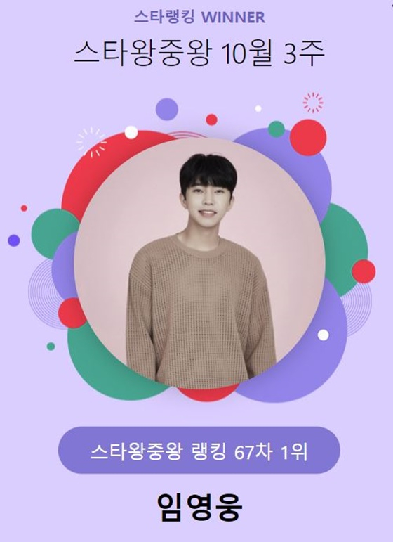 임영웅은 10월 13일 오후 3시 1분부터 10월 20일 오후 3시까지 진행된 10월 3주(67차) 스타왕중왕 랭킹 투표에서 1위에 올랐다. 그는 이번 투표에서 13만5764표를 얻으며 67주째 1위 자리를 수성했다.