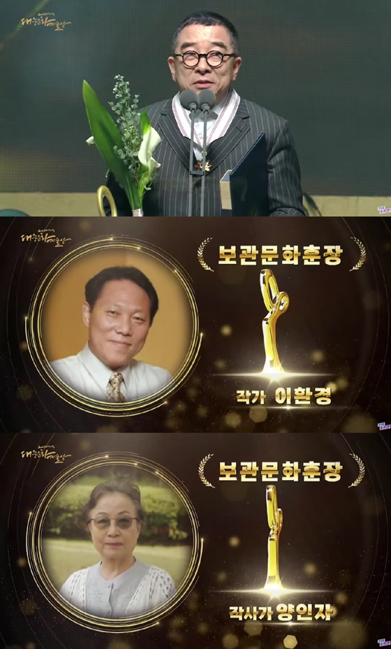 이날 보관문화훈장은 가수 김수철, 드라마 작가 이환경, 작사가 양인자에게 그 영예가 돌아갔다.