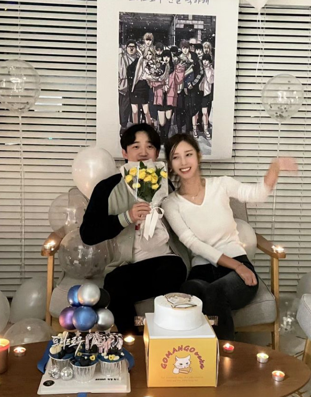 공개된 사진 속 야옹이 작가와 진선욱 작가는 웹툰 '프리드로우' 완결 축하 파티를 즐기고 있다. 야옹이 작가는 밝은 웃음으로 남편 옆에서 행복함을 감출 수 없는 모습이다.