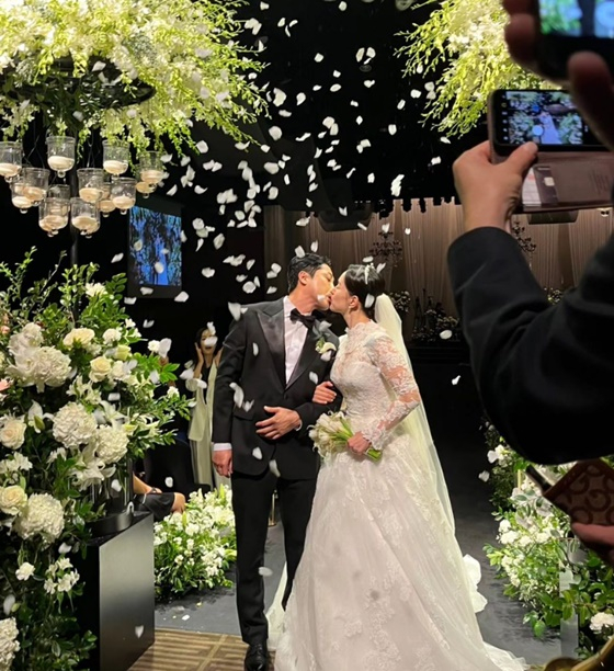 이와 함께 손헌수는 결혼식 현장이 담긴 사진을 올렸다. 손헌수는 많은 사람들 축복 속에서 아내와 입을 맞췄다.