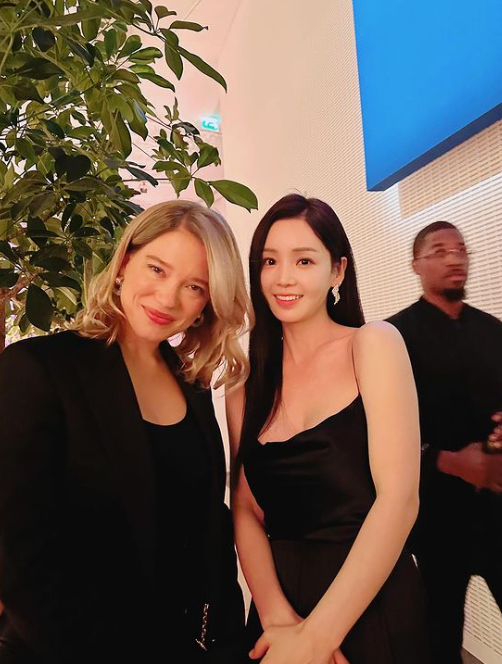 사진을 통해 남규리는 블랙 드레스를 입고 레아 세이두와 미소를 짓고 있다.