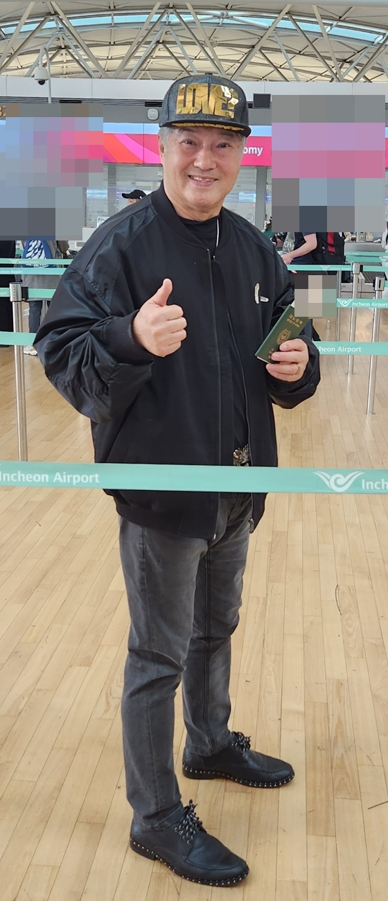 한지일은 공항에서 과거 청춘스타의 면모를 다시 한번 보여줬다. 올블랙 패션으로 회춘한 원로배우의 모습을 보여줬다. 환한 미소와 '엄지척' 포즈까지 후배 스타들에 못지 않은 포즈까지 취해 눈길을 끌었다.