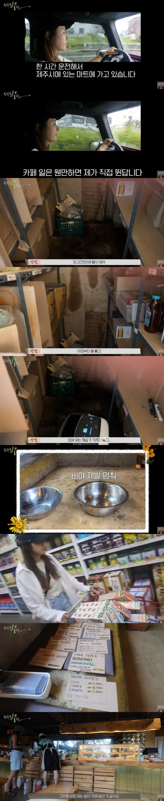 박한별은 "아침에 비가 너무 많이 와서 분수대에 물이 넘칠 뻔해서 물고기들이 밖으로 도망갈까봐 대야로 분수대 물을 다 퍼서 버렸다"라며 처참했던 카페 상황을 전하기도. 아침 상황이 담긴 영상에서 그는 "창고에 물이 새서 아침부터 물 빼고 집에 있는 제습기 갖다놓고 하..."라며 한숨을 쉬었다.
