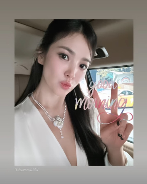 송혜교는 28일 자신의 인스타그램 스토리에 'good morning'라는 글이 담긴 사진을 게재했다.
