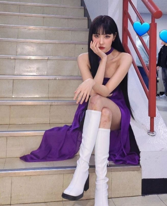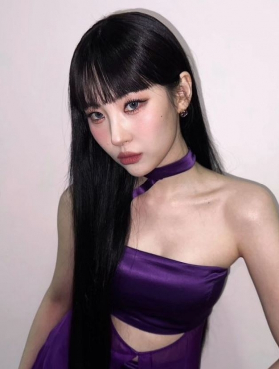 공개된 사진 속 선미는 보라색 무대 의상을 입은 채 카메라 앞에서 포즈를 취하고 있다. 살짝 드러난 그의 보디라인과 또렷한 이목구비가 보는 이들의 시선을 사로잡는다.