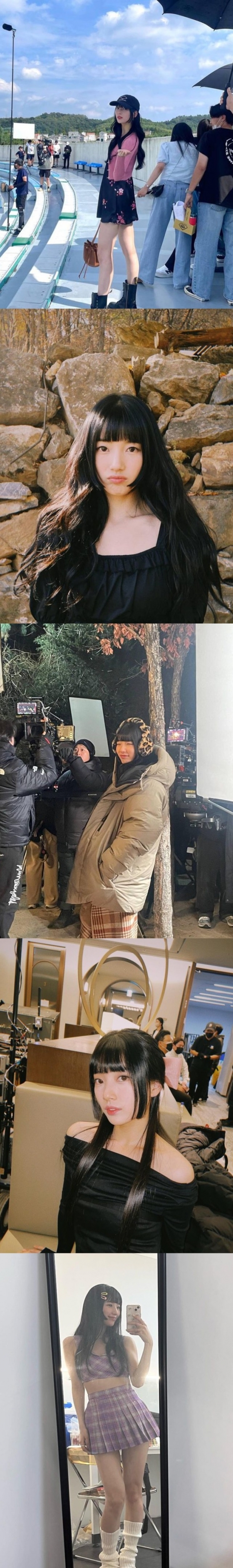 30일 수지는 자신의 인스타그램에 "두나현장"이라는 글과 함께 여러 장의 사진을 게재했다.