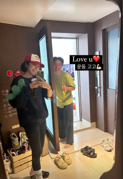 공개된 사진 속엔 손담비가 운동가기 전 현관 앞에서 거울을 응시한다. 그의 뒤로는 이규혁이 맨발로 손담비를 배웅하며 환하게 웃고 있다. 두 사람의 행복한 신혼 생활이 돋보여 이목을 끈다.
