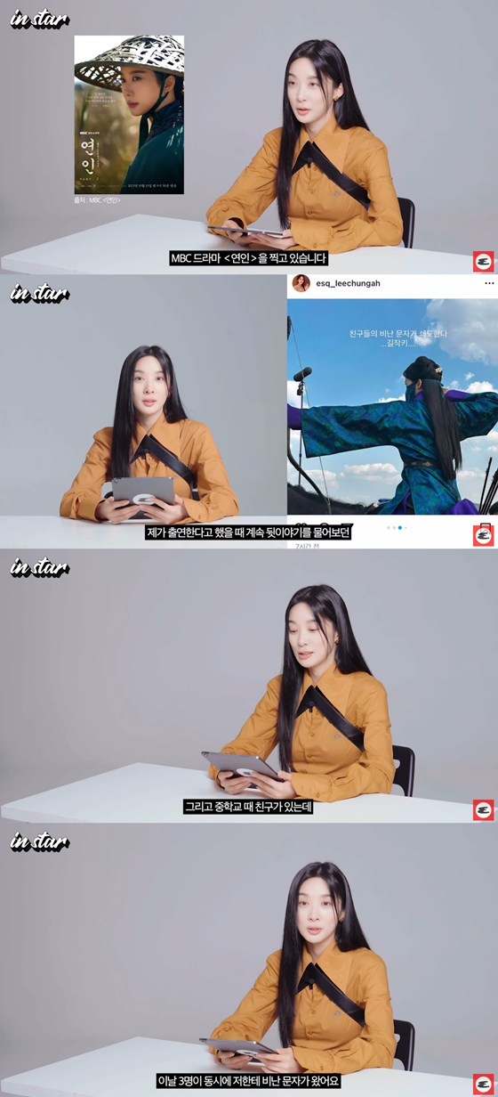 또한 이청아는 "'연인' 팬들이 있어요. 제가 출연한다고 했을 때 계속 뒷이야기를 물어보던 친한 언니 한 분, 그리고 제 대학교 친구, 그리고 중학교 때 친구가 있는데. 이날 3명이 동시에 저한테 비난 문자가 왔어요"라고 밝혔다.