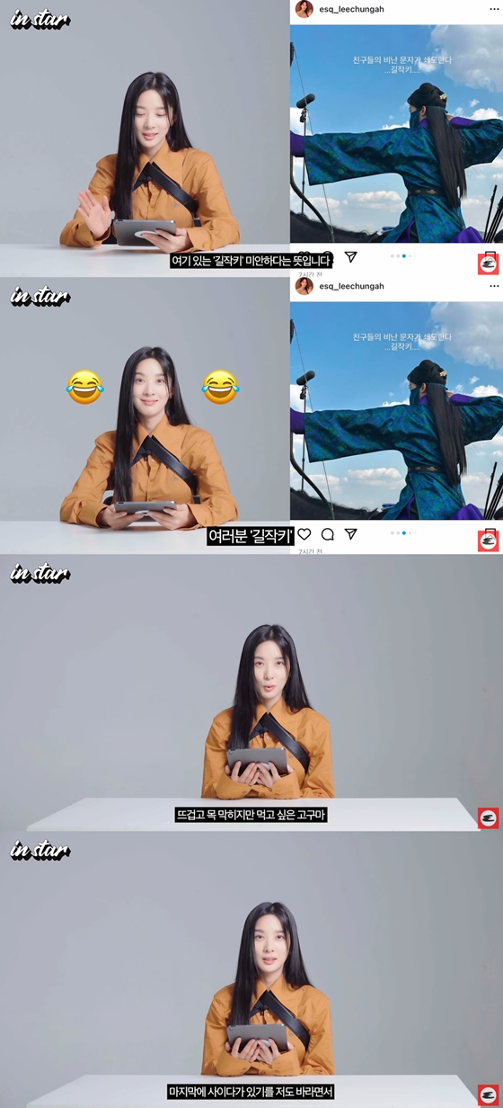 이청아는 자신의 SNS에 올렸던 한 게시물에 대한 설명도 했다. 그는 앞서 '친구들의 비난 문자가 쇄도한다...길작키'라는 글과 사진을 자신의 SNS에 게재한 바 있다. 이에 이청아는 '길작키'라는 표현에 대해 "미안하다는 뜻입니다"라고 설명하면서 "여러분 길작키"라고 말했다. 이는 극 중 이청아가 남궁민-안은진의 멜로를 흔들면서 일부 시청자들의 과몰입에 따른 표현이었다.