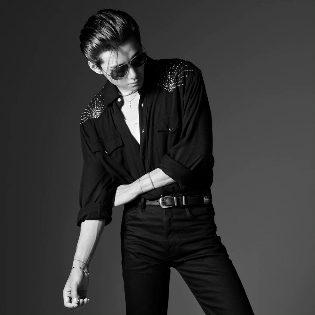 화보 속 뷔는 웨스턴 셔츠와 슬림 핏의 슬랙스, 메탈 프레임 선글라스를 착용하고 락시크 스타일을 완벽하게 소화해 세련된 룩의 완성도를 높였다. 에디 슬리먼은 극단적인 슬림함을 추구한 스키니한 스타일이 시그니처인데, 뷔의 슬림한 바디라인이 셀린느 컬렉션을 한층 더 돋보이게 했다.