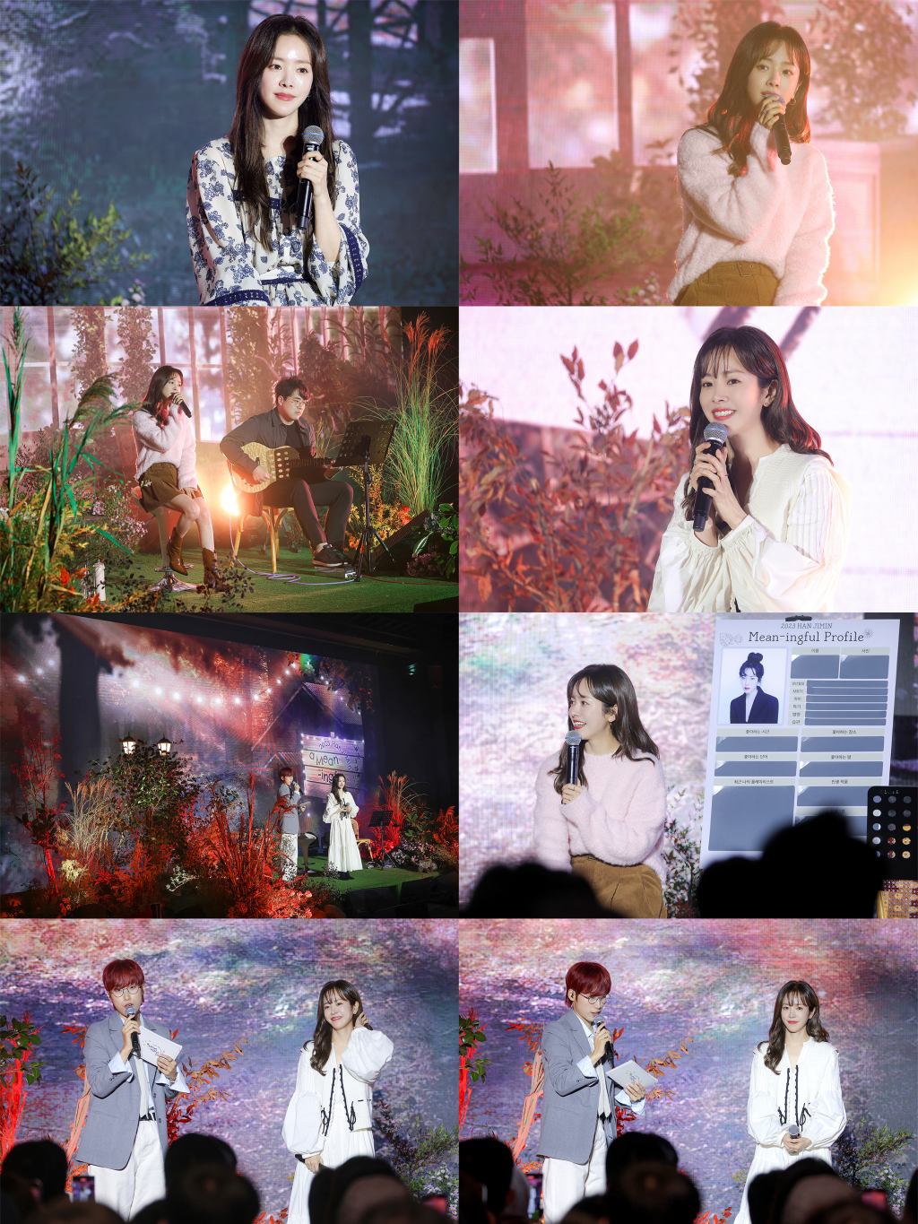 이어 한지민은 청아한 목소리로 김창완의 '너의 의미'를 가창한 것은 물론, 스윗소로우의 '사랑해'를 부르며 분위기를 고조시켰고 '날 믿어줄 감싸줄 지켜줄 힘이 되줄 나의 좋은 사람들'이라는 가사를 부를 때 팬들을 향해 손짓하며 감동적인 무대를 이어갔다. 작품 이야기를 나누는 'a Mean-ingful Tea Time' 코너에서는 '부활'부터 '미쓰백', 최근작 '힙하게'까지 다채로운 이야기들이 계속됐다.