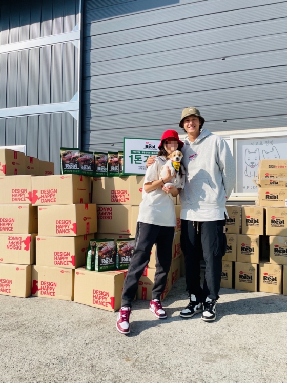 배우 이기우 부부가 유기견 사료기부 봉사에 나섰다.
