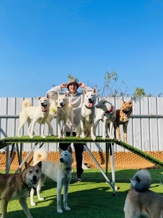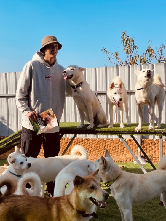 이기우는 반려견으로 입양한 차차가 머무르던 보호소 진도러브레스큐에 방문하여 하림펫푸드 임직원들과 함께 사료 1톤을 전달했다.