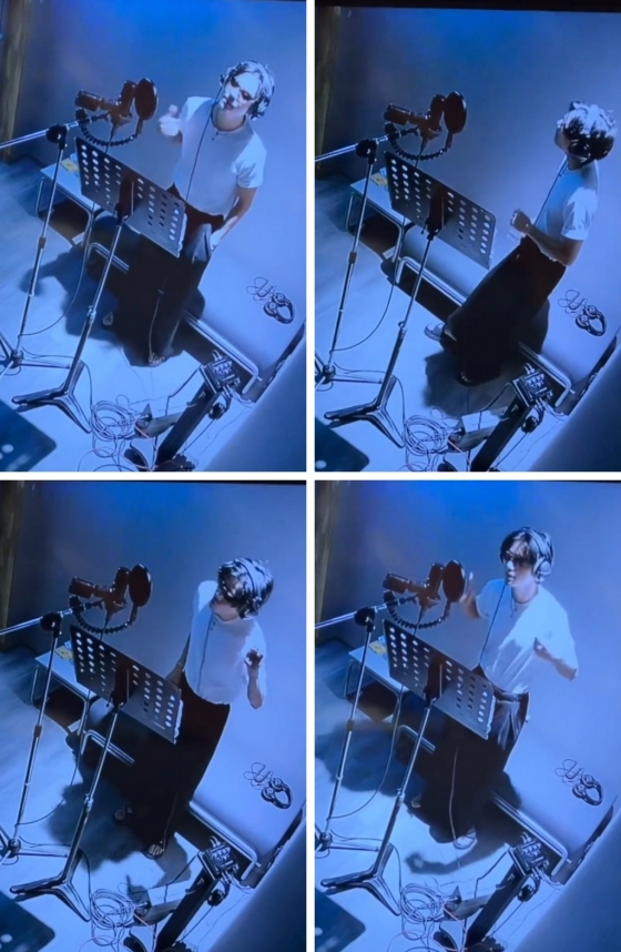 방탄소년단(BTS) 뷔가 노래를 녹음하는 영상을 공개해 신곡 발매에 대한 기대감을 높였다.