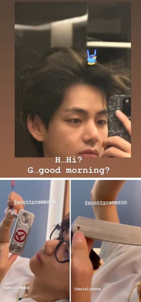 또 다른 영상에는 뷔가 자신의 이름이 각인된 골프채를 보고 있다. 영상에는 다니엘 강의 이름과 커스텀 퍼터로 유명한 스카티 카메론의 이름이 태그됐다. 뷔의 이름으로 특별히 만들어진 커스텀 퍼터는 다니엘 강의 선물로 짐작된다.