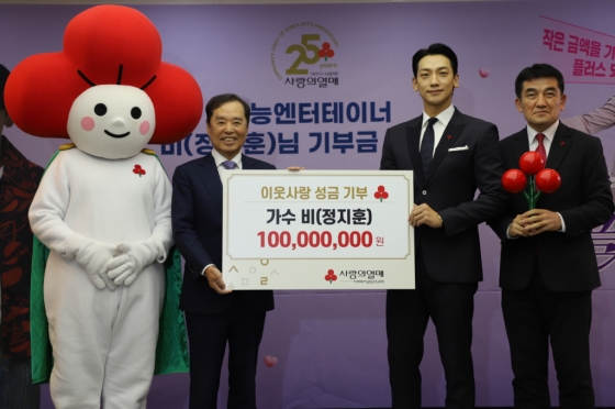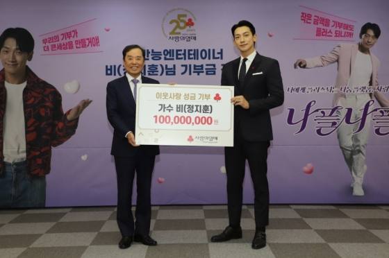 가수 겸 배우 비(정지훈)가 사랑의열매 사회복지공동모금회에 1억 원을 기부했다.
