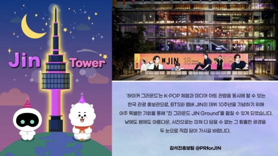 진의 팬덤계정인 김석진홍보팀(@PRforJIN)과 홈마스터 A LITTLE BRAVER(@ALittleBraver92), 그리고 일본 팬덤 계정 WAIT FOR JIN JAPAN(@WaitForJIN_BTS)이 함께 연예인 최초로 서울의 상징인 서울 N타워(구 남산타워)에서 진의 생일 축하쇼를 진행할 예정으로 큰 기대를 모으고 있다.