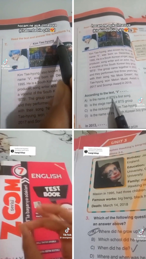 방탄소년단(BTS) 뷔가 튀르키예 중학교 영어교재에 실려 글로벌 존재감을 빛냈다.