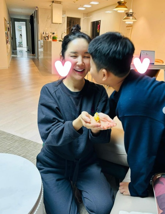 14일 장영란은 아들에게 뽀뽀를 받으며 "행복은 가까이에. 나의 소소한 행복, 아니 아주 큰 행복"이라고 밝혔다.