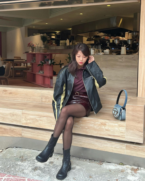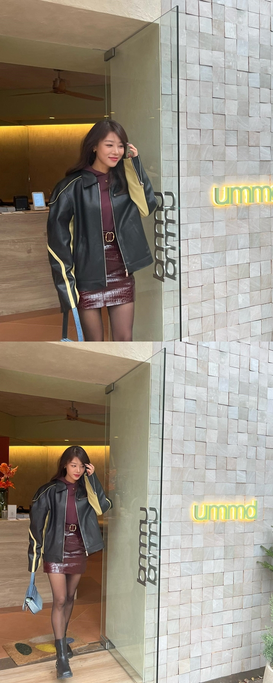 공개된 사진에는 브런치를 즐기러 나선 유빈의 모습이 담겼다. 그는 가죽 재킷에 가죽 치마로 멋을 냈다. 특히 건강미에 섹시미까지 더해진 각선미는 미모를 한껏 돋보이게 했다.