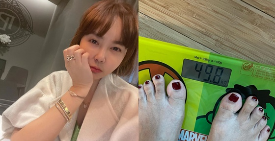 그는 "진짜 한 달 아프고 났더니 남은 건 잔기침과 살"이라며 늘어난 몸무게에 절망했다. 체중계에 따르면 황혜영의 몸무게는 49.8kg다.