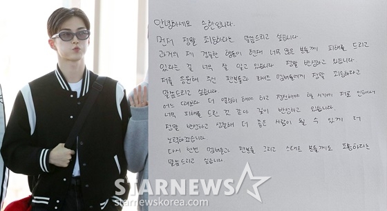 '사생활 논란에 활동 중단' 라이즈 승한, 자필 사과문 공개 "깊이 반성"