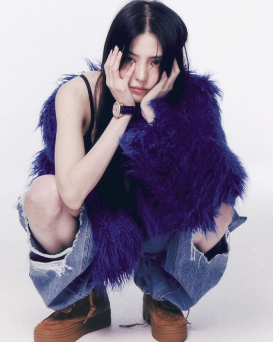 공개된 사진 속 한소희는 보라색의 퍼 재킷과 무릎이 노출되는 청바지를 매치해 힙한 분위기를 연출했다. 또 특유의 독보적인 분위기와 오묘한 눈빛이 팬들의 마음을 사로잡았다.