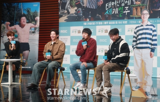 연예방송'태어난김에 세계일주' 세번째 여행[★포토]발행 : 2023.11.23 ・ 14:37이동훈 기자23일 오후 서울 상암동 MBC 골든마우스홀에서 기안84, 덱스, 김지우PD, 장도연이 참석한 가운데 예능 프로그램 '태어난 김에 세계일주3' 제작발표회가 진행되고 있다. /2023.11.23<저작권자 © 스타뉴스, 무단전재 및 재배포 금지>기안84덱스태어난김에세계일주3추천 기사이동훈 기자기자홈좋아요 연예-방송의 인기 급상승 뉴스연예-방송의 최신 뉴스