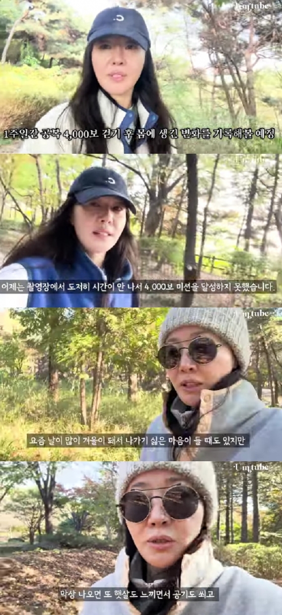 엄지원은 "2주째 꾸준히 공복 유산소 실천했고, 살이 1.5kg 정도 빠졌다. 요즘 날이 많이 추워져서 나가기 싫은 마음이 들 때도 있지만, 옷을 많이 껴입고 나오면 운동이 끝나고 나서 정말 개운하다. 조금 걸었을 때 그런 느낌이 안 들고, 적어도 40분은 걸어줘야 하는 것 같다"며 "일상에서 시간을 쪼개서 해야 한다. 시간은 만드는 거다. 저 같은 사람에게는 남는 시간이 없다. 막상 나오면 햇살도 느끼면서 쨍한 공기가 기분을 좋게 한다"고 말했다.