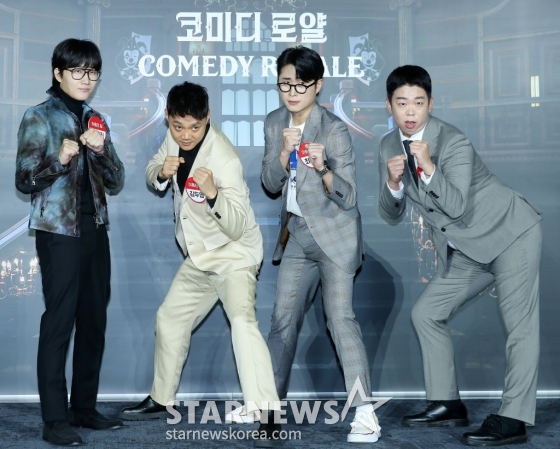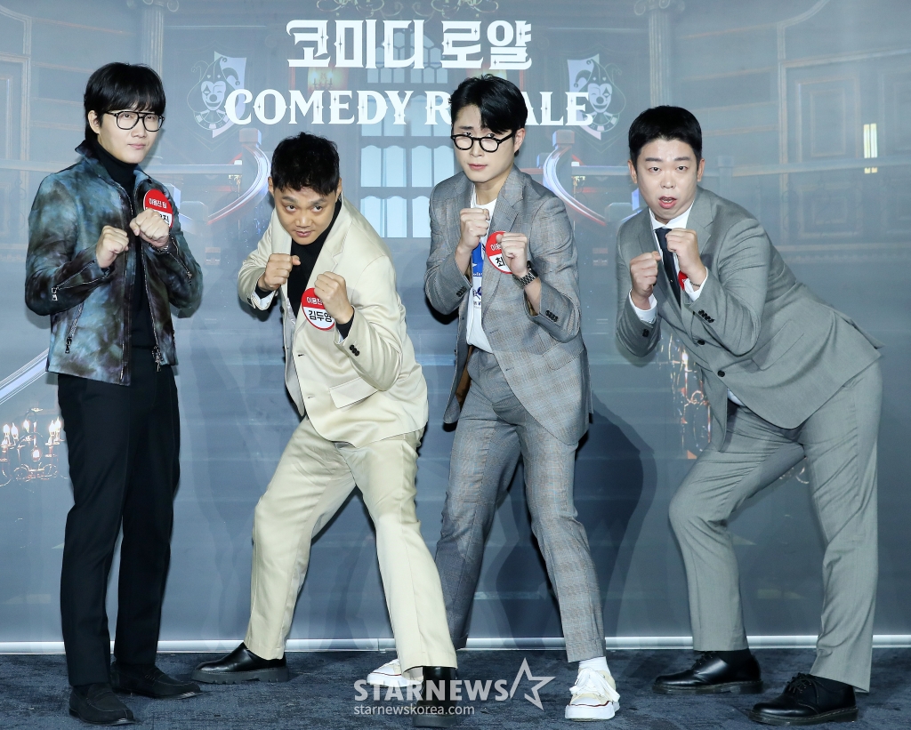 연예방송이용진-김두영-최지용-박진호 '덤벼!'[★포토]발행 : 2023.11.27 ・ 14:03김창현 기자코미디언 이용진, 김두영, 최지용, 박진호가 27일 오후 서울 성동구 메가박스 성수에서 진행된 넷플릭스 예능 '코미디 로얄' 제작발표회에 참석해 포즈를 취하고 있다.'코미디 로얄'은 K-코미디를 대표하는 20인이 넷플릭스 단독 쇼 런칭 기회를 두고 나이, 경력, 계급장 떼고 붙은 웃음 배틀 예능이다. 오는 28일 공개. 2023.11.27<저작권자 © 스타뉴스, 무단전재 및 재배포 금지>넷플릭스코미디코미디로얄탁재훈이용진황제성추천 기사김창현 기자기자홈좋아요 연예-방송의 인기 급상승 뉴스연예-방송의 최신 뉴스