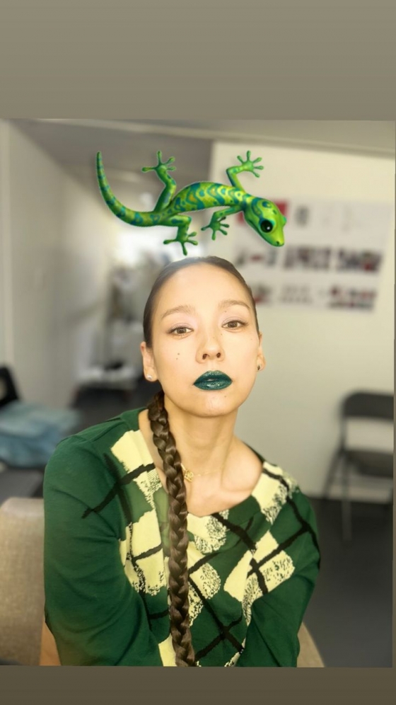 또 다른 사진에서는 입술색과 비슷한 초록색 도마뱀 이모티콘을 덧붙이는가 하면, 쇄골 라인을 강조하거나 특유의 여유로운 표정 연기를 선보이며 글로벌 팬들에게 반가움을 안겼다.