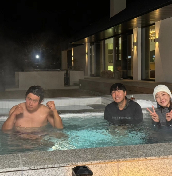한혜진은 29일 자신의 SNS를 통해 "형제들의 호연지기. 도저히 한 장만 올릴 수가 없네. 영하 6도 강원도의 올해 마지막 자쿠지. 이번 주 금요일 유튜브에서 만나요. 형제들의 사우나, 대상 기원 입수"란 글을 게재했다.