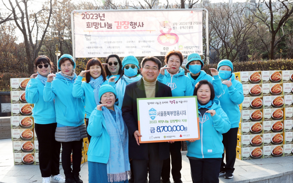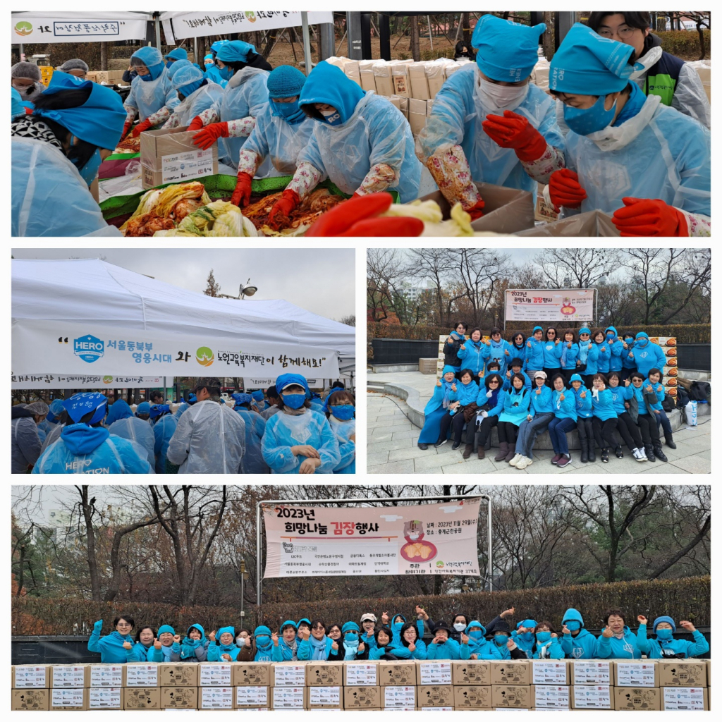 '희망나눔 김장행사'는 노원구 내 취약계층 800여 가구에 김장 지원을 하는 행사로, 서울 동북부영웅시대 회원 중 34명은 김장 버무리기 봉사에 참여해 이웃 사랑을 실천했다.