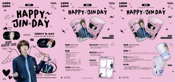 진의 팬 계정 BOY BE MYTH(@boybe_myth)는 서울에서 11월 30일부터 12월 4일까지, 일본 오사카에서 11월 30일부터 12월 5일까지 각각 생일 카페 이벤트를 진행한다.